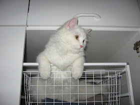 Tiistaina aamupäivä meni vielä nukkuessa ja kummallisia unia nähden. Kävin mm. Indonesiassa ja mies, joka asuu täällä, oli vienyt kissamme terveyskeskukseen trimmattavaksi. Oli meillä sitten uusi hieno kalju kissa villakoiramaiseen tyyliin viimeisteltynä. Toisaalta vaaleanpunainen ja valkoinen sopivat hyvinkin yhteen.